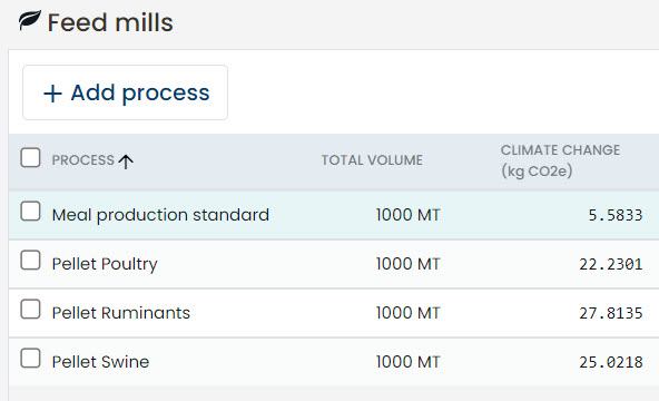 Calculate the environmental impact values of the feed ingredients that you use in your feed mill. You can compare the values associated with different ingredients or different sources of the same raw material.